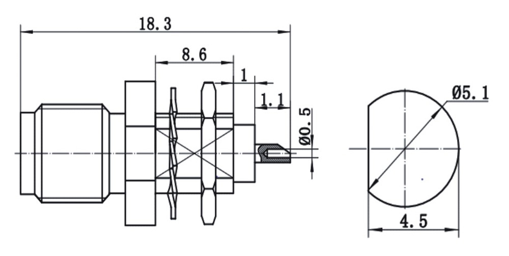 SSMA射频同轴连接器的外形及结构特点类似SMA系列的设计。具有螺纹连接机构,其外导体内径只有2.23mm,工作频率可达40GHz,可供毫米波领域电子设备和仪器的射频回路中选用。我公司生产的SSMA系列产品均符合IEC169-1IEC169-18标准。